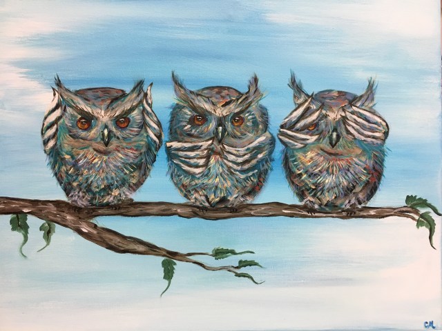 Hear No Evil Owls Painting 20” x 16” by Chris